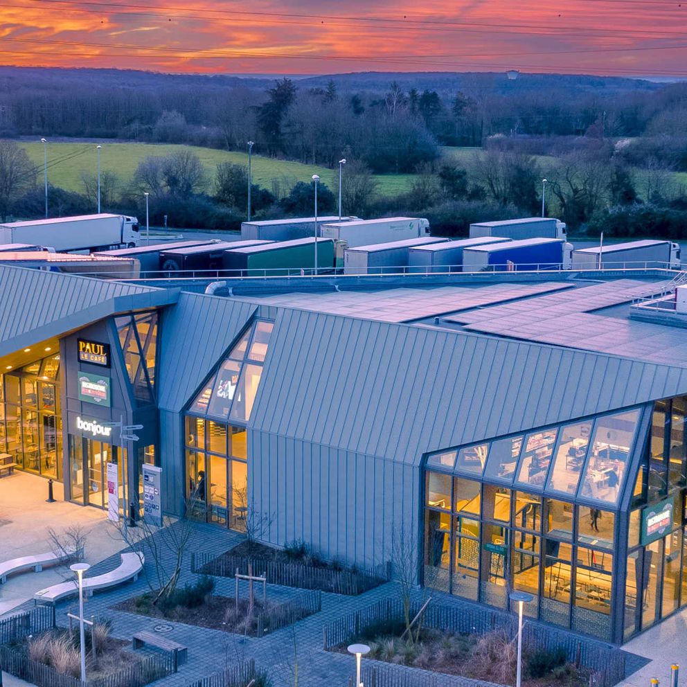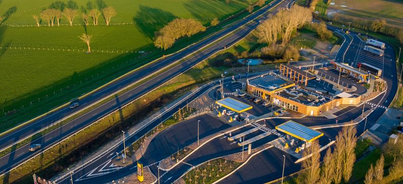 Dernière aire de services sur l’autoroute A10 avant Paris, la nouvelle aire de Limours-Briis-sous-Forges accueille le plus grand hub de recharges ultra rapides de TotalEnergies. Pour accompagner l’essor de la mobilité électrique, 23 points de recharge jusqu’à 300 kW sont accessibles à l’ensemble des connecteurs existants sur le marché. Selon le type de véhicule, il est ainsi possible de retrouver une autonomie de 100 kilomètres en 6 minutes et de recharger environ 80% de sa batterie en une vingtaine de minutes, soit le temps moyen d’une pause sur l’autoroute. L’aire intègre aussi des énergies renouvelables grâce 1500 m² de panneaux photovoltaïques positionnés sur le toit du bâtiment et sur l’ombrière de l’arrêt des cars. Cette production d’énergie devrait couvrir près de 20% des besoins du site et ainsi diminuer son empreinte carbone.