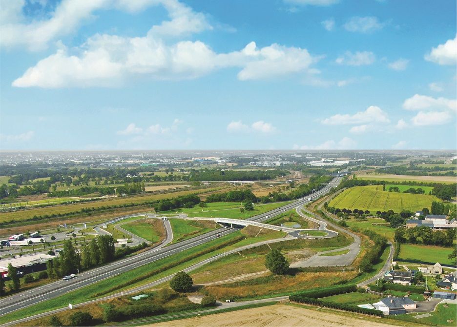 - La création de l’échangeur de Laval-Mayenne (4 ha) sur l’A81 situé entre les sorties Évron (n°2) et Laval est (n°3), permettant la desserte du parc d’activités. La maîtrise d’ouvrage est assurée par VINCI Autoroutes.