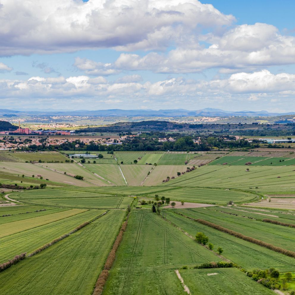 Au sommet de l’oppidum, dirigez-vous vers l’une des tables d’orientation, situées aux quatre points cardinaux, pour décrypter le paysage. L’horizon s’étend des Cévennes au pic du Canigou, un habitué du Tour. Plus loin, une forme étonne. L’étang de Montady, ancien marécage, a été asséché par les moines au XIIIe siècle. Il est aujourd’hui recouvert de champs organisés en soleil : des parcelles triangulaires dont les sommets se joignent au centre de l’étang, formant un étonnant diagramme "naturel". La géométrie parfaite des formes donne un côté surréaliste au champ : les crop-circles extraterrestres ne sont pas loin.