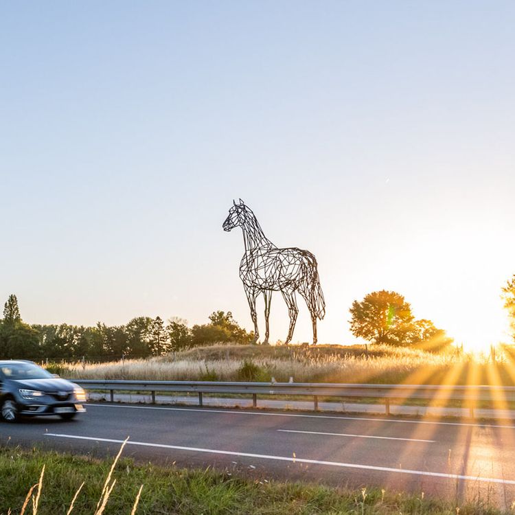 Pour ce 5e volet de Kilomètre-art, chaussez vos étriers ! Notre web-série dédiée à l’art autoroutier vous emmène au bord de l’autoroute A85 à la découverte d’Archeval, un majestueux cheval d’acier.