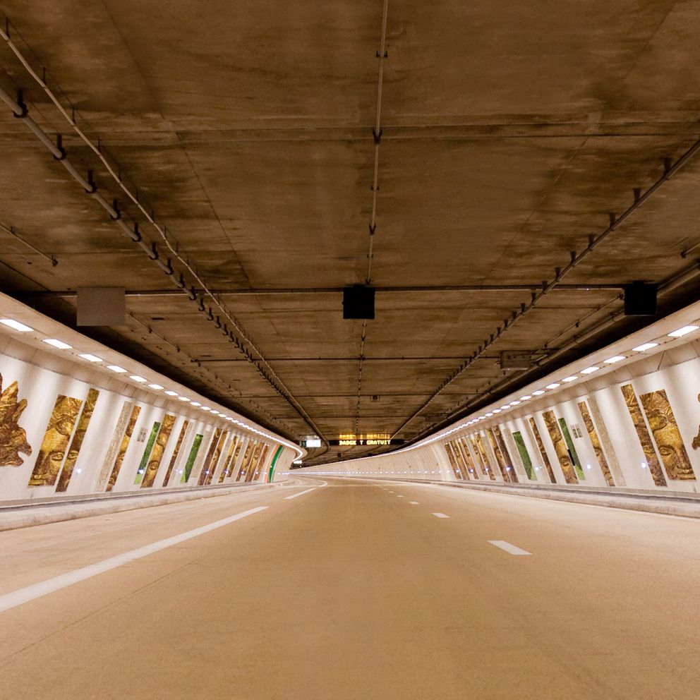 En plus de fluidifier le trafic dans l’ouest parisien, le Duplex A86 est aussi, en quelque sorte, une galerie d’art. Le tunnel de 10 km entre Vélizy et Rueil-Malmaison abrite « L’Allégorie du château de Versailles », une mosaïque monumentale inspirée du château de Versailles.